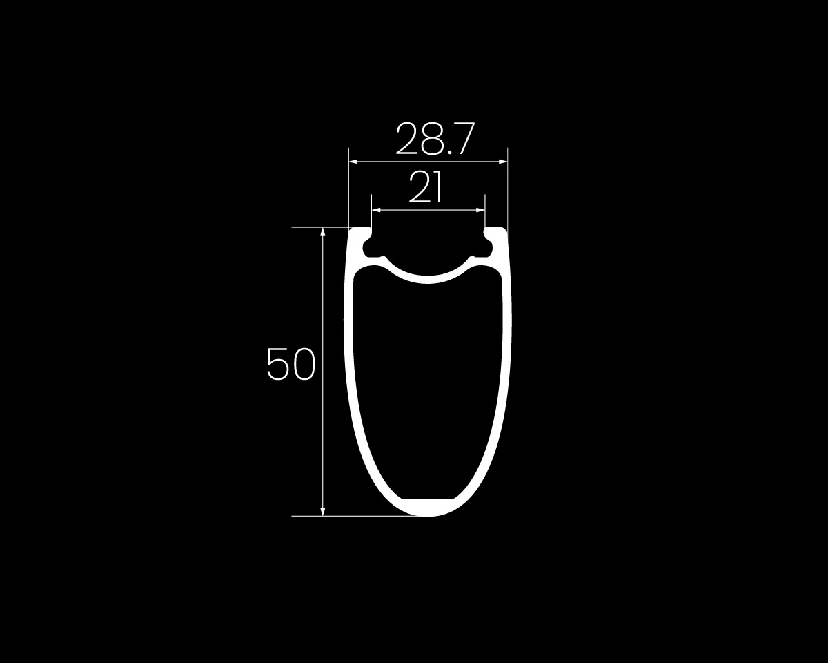 At Elitewheels, we design our Drive wheels to match the needs of professional riders. In order to deliver the best performance, we incorporate our own UNI carbon fiber, a specific ratio of T800 and T1000 carbon fiber ,making rims not only strong, but also exceptionally light and stiff. The U/V-shaped rim profile of the Drive 50D was chosen to make the rim both aero as well as stable in windy conditions. The Drive 50D’s 21mm inner rim allows for wider tires to be run, allowing for more comfort and grip.