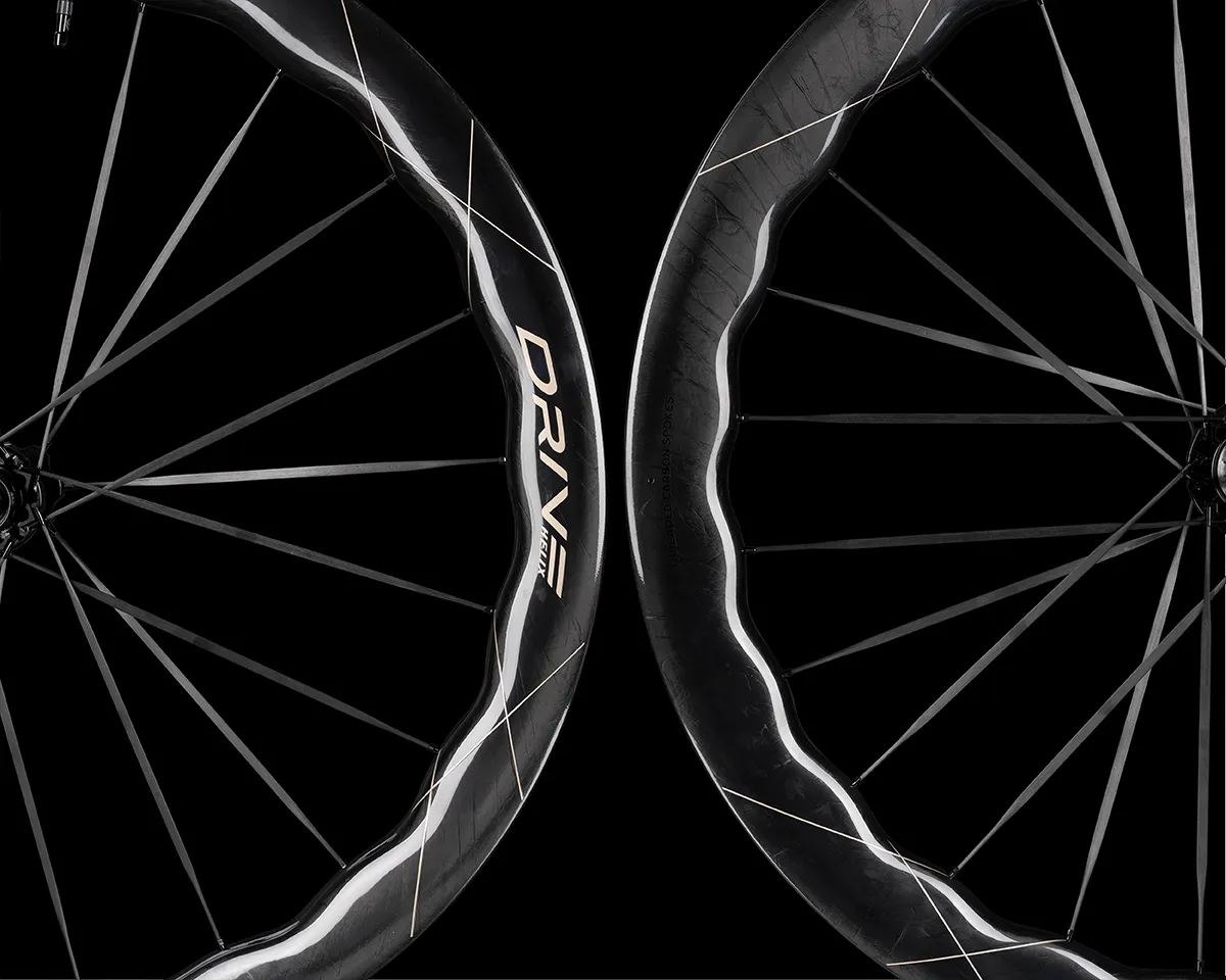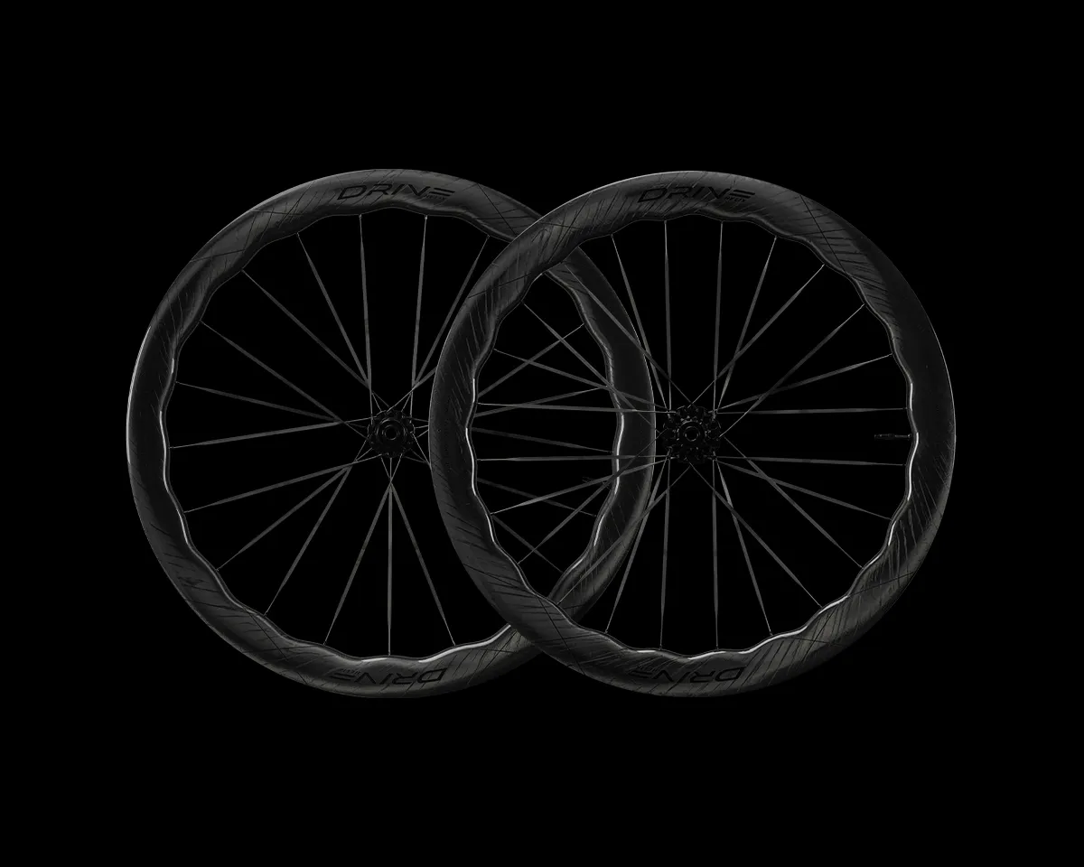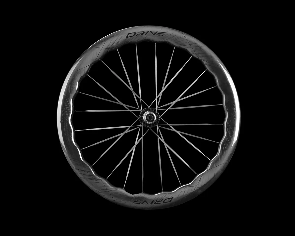In designing the Drive Helix 57D CS wheelset, the goal was to create something that ticked all of the boxes. It had to not only be aero, light, laterally stiff, strong, but also crosswind resistant. To accomplish this, we used our in-house UNI carbon fiber, which is a mixture of our custom resin and genuine Japanese Toray T800 and T1000 carbon fiber. It allows our wheels to be stiff, light, and strong enough to go far beyond the UCI’s vertical impact test. Our patented undulating rim design draws inspiration from the tubercle effect found widely in nature, allowing for a significant improvement in stability in windy conditions.