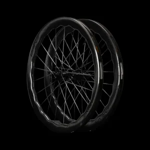 Drawing inspiration from our popular Drive road wheels, the 57D CS uses replaceable carbon spokes, UNI carbon fiber, and TPI ceramic bearings. What sets these new wheels apart isn’t just the new patented Helical Dual Ratchet Hub and improved carbon spoke design, but also our innovative undulating rim design, whose unique profile results in helical-shaped laminar flow when out riding.