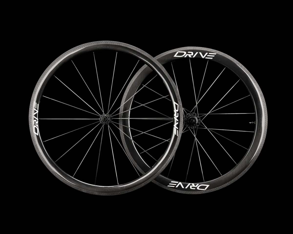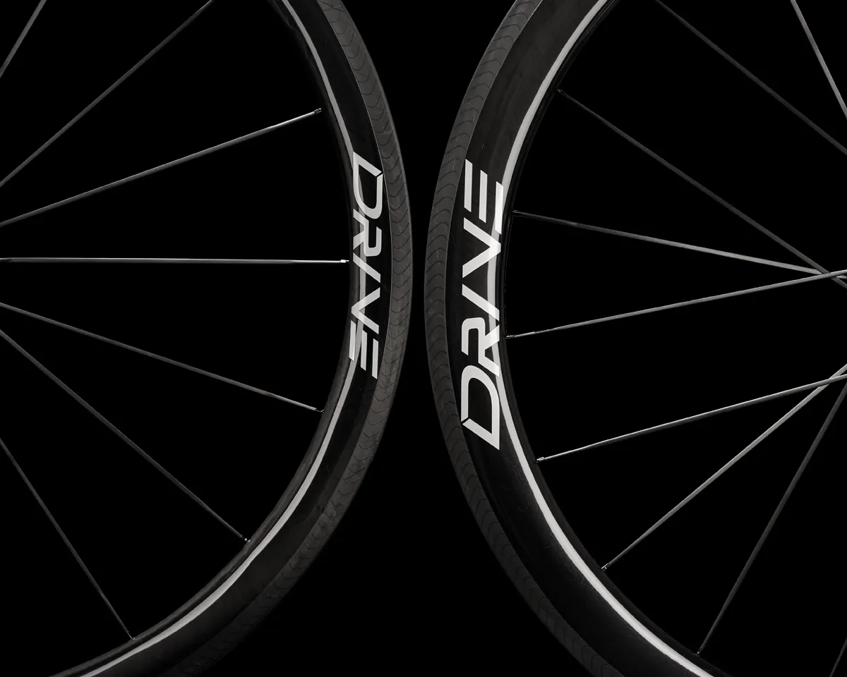 What separates Drive wheels from most others is its use of high-modulus carbon spokes. The 3.2mm wide aero bladed spokes offer a 7% increase lateral response as compared to equivalent steel spokes. The spokes are mechanically secured, giving the benefit of being able to be trued and maintained just like regular spokes. Anti-loosening technology is also incorporated into the spoke nipples. The threads built into the nipples give it a double-locking effect.