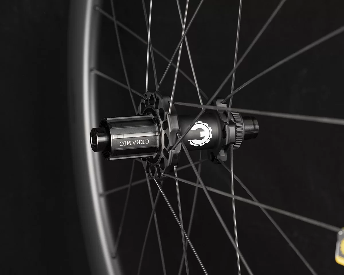 Marvel Disc wheels feature high flange hubs which offer greater lateral stiffness, improving stability. Both the front and rear wheel hubs feature ceramic bearings with an extremely low coefficient of friction, saving you precious watts. The front hub uses 6803 ceramic bearings and the rear hub uses three 6803 bearings and one 6903 bearing. The larger the bearing, the better the rigidity.
